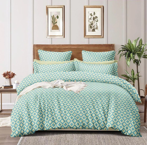Green Squares Double Bedsheet with pillow Covers(1+2) Set