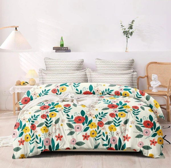 Multi Flowered Double Bedsheet with Pillow Covers (1+2) Set